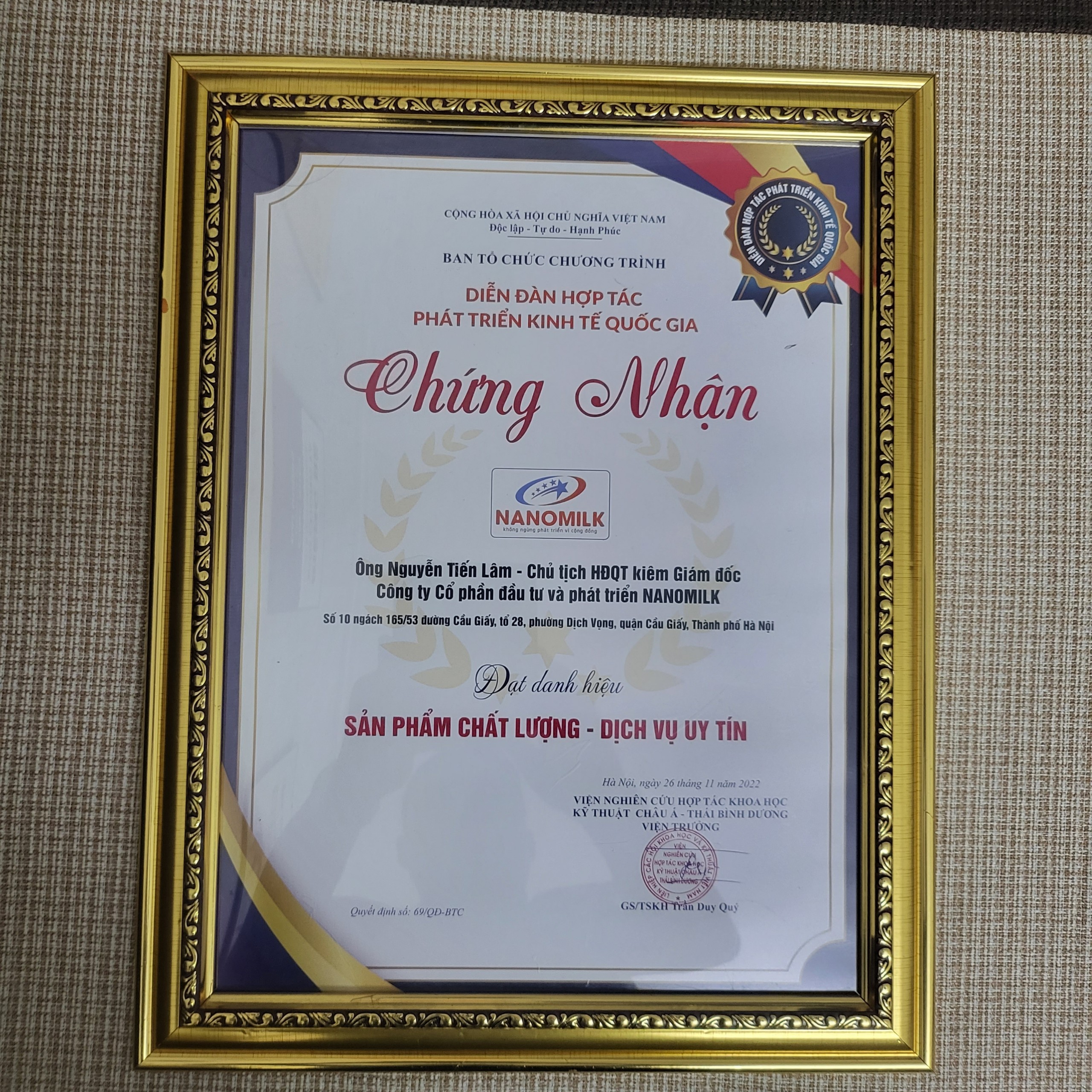 - Bằng khát vọng tiên phong cùng chiến lược đầu tư và phát triển bền vững. NANOMILK phấn đấu trở thành công ty hướng đi tiếp cận xu thế phát triển mô hình quốc tế đầu tiên tại Việt Nam, có uy tín và vị thế kinh tế trong nước, xây dựng thành công chuỗi đại lý, siêu thị và dịch vụ chuyên nghiệp, góp phần nâng cao chất lượng đời sống người việt và nâng tầm vị thế người việt trên trường quốc tế.
